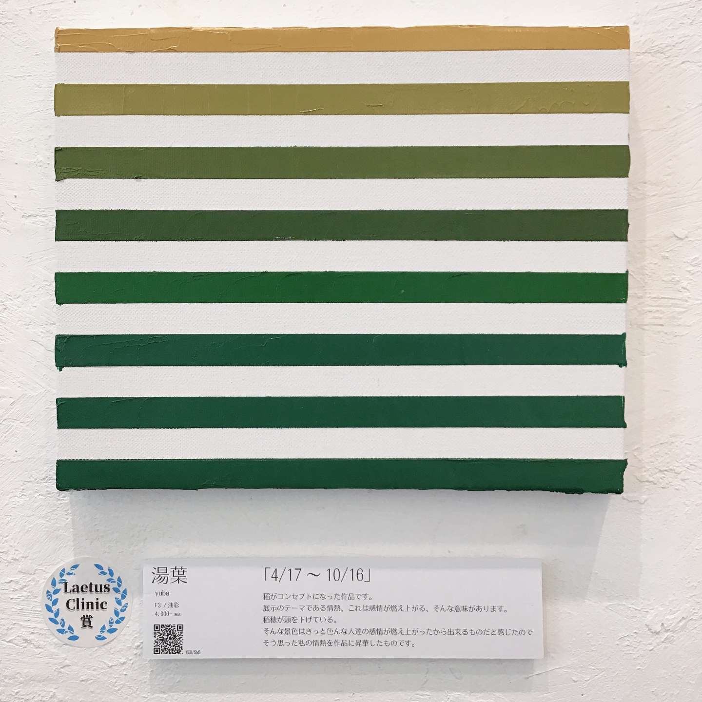〇副賞:大阪・本町のクリニック内展示スペースでの作品展示・販売